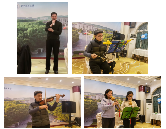 活动现场,多才多艺的李开成教授为大家献上了二胡曲《绣金匾》和小提琴曲《小草》,平时忙于行政事务但又有文艺才华的杜桂焕老师和古晓艳老师为大家演奏了葫芦丝名曲《蓝色的香巴拉》。悠扬的旋律、美妙的乐声,赢得了阵阵热烈的掌声。