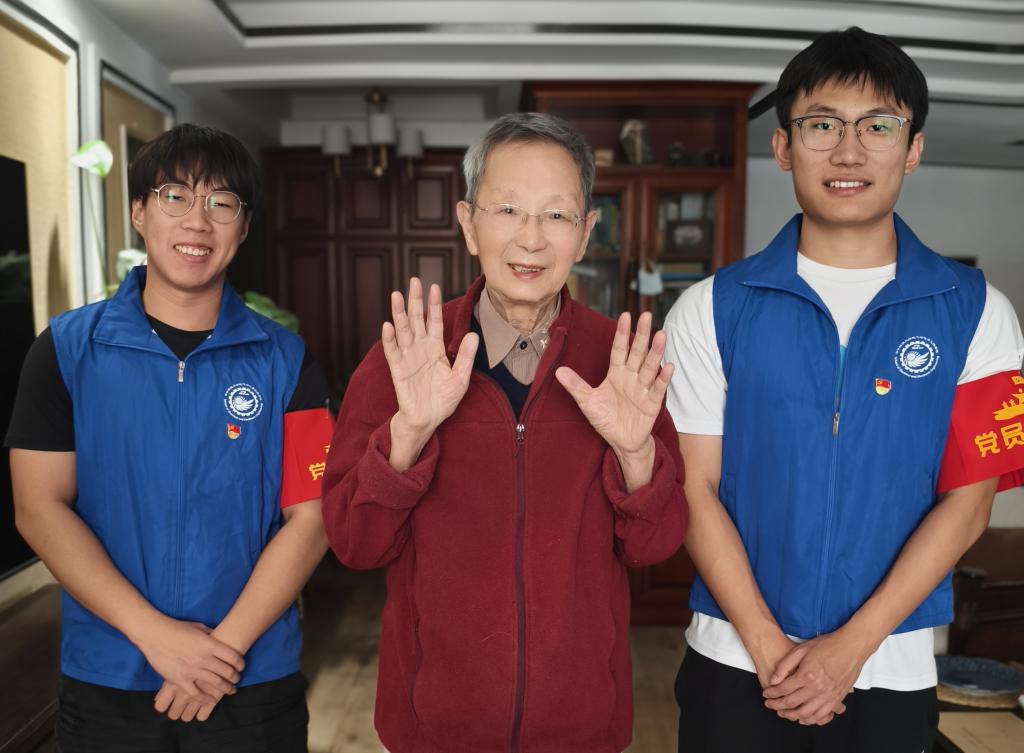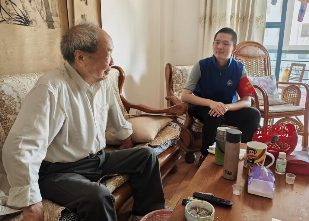 在老同志家中,学生党员们力所能及地帮助老同志解决一些生活中的问题。如张瑞林老师提到不知道如何利用企业微信预约亲戚朋友车辆进入学校,2022级本科生党员青晟主动教张老师如何预约并进行演示。