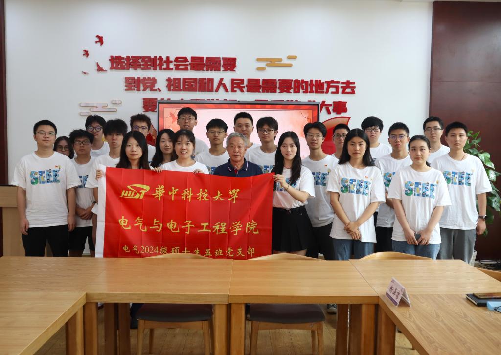 在电气2024级博士生一班党支部,唐跃进教授深入讲诉了老一辈华科大人的奋斗历程,强调华工精神的传承与发扬,并勉励青年党员不负韶华、勇担使命,奋力为建设社会主义强国贡献智慧和力量。