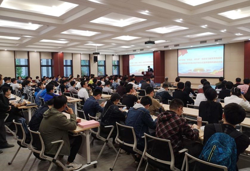 2021年4月23日晚,电气大楼B203报告厅,在庄严的国歌声中,伟德(bevictor)官方网站“学党史、讲校史”党史学习教育专题报告——第28届预备党员培训班开班仪式暨青年教师师德师风建设讲座隆重举行。