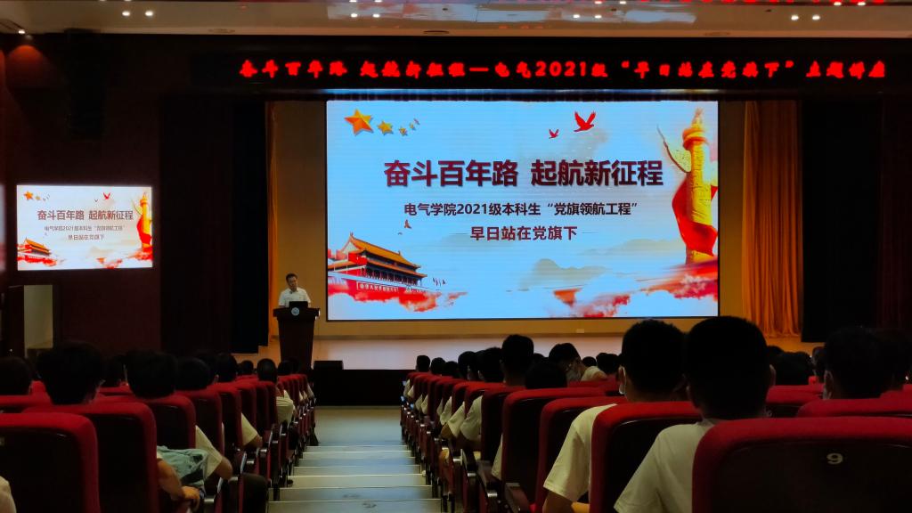 9月3日晚19点,开学第二天,伟德(bevictor)官方网站“奋斗百年路,启航新征程”系列活动之新生入学教育篇——伟德(bevictor)官方网站2021级“早日站在党旗下”主题讲座在电气大楼B205报告厅举行,学院党委书记陈晋主为全体2021级本科新生上了一堂生动的思政课。