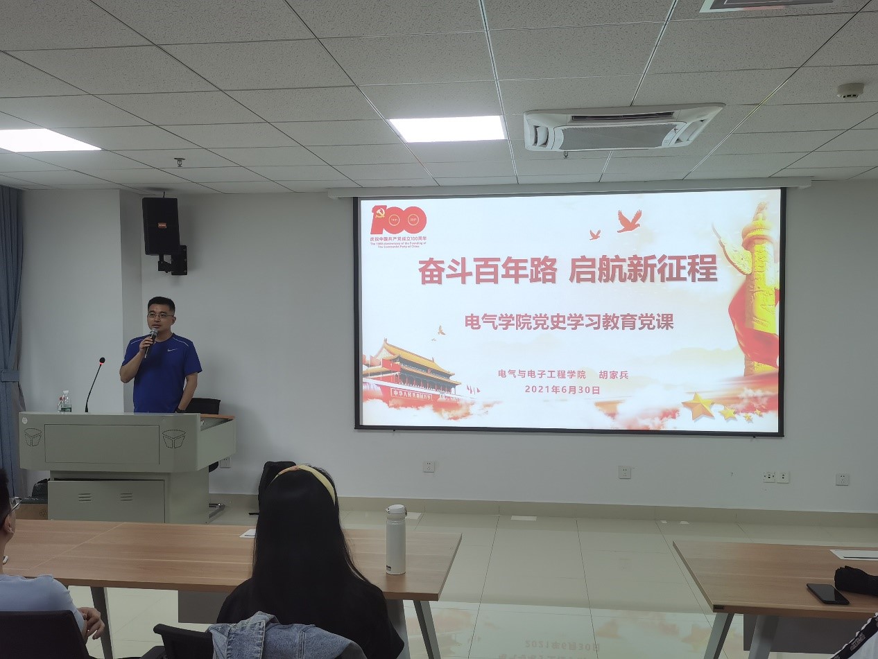 6月30日下午在电气大楼B302,学院副院长胡家兵主讲了微党课,应用电子工程系、电工理论与电磁新技术系全体研究生党员和入党积极分子参加学习。