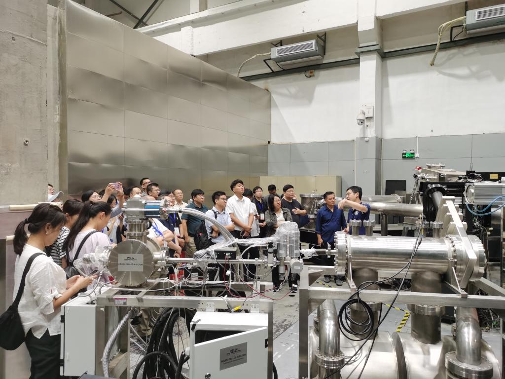 聚变所党支部书记夏冬辉介绍了党支部基本情况、主要做法和取得成效,党支部委员郑玮介绍了聚变科学知识和设备工作原理,带领大家参观实验托卡马克装置。