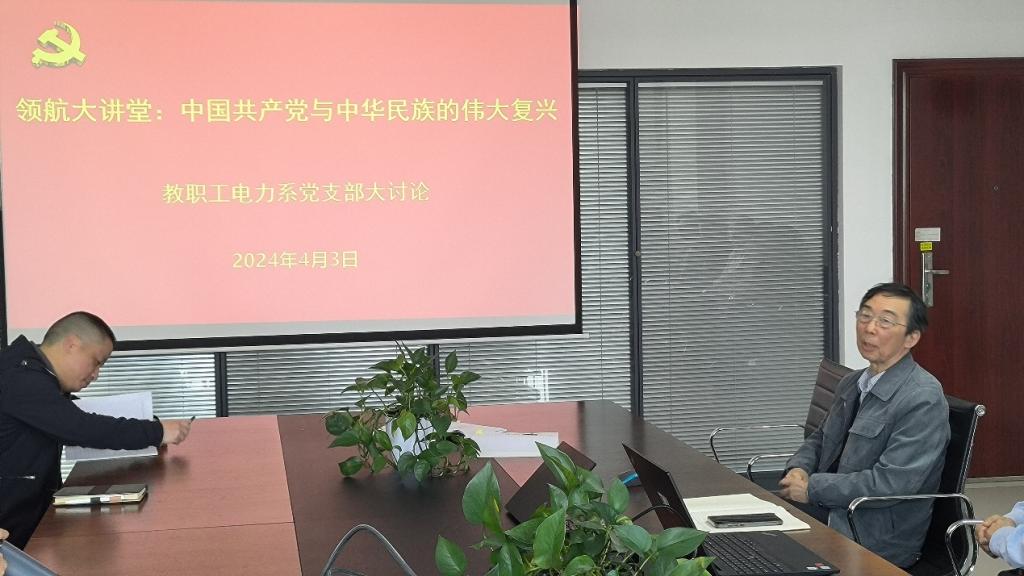 2024年4月3日上午,伟德(bevictor)官方网站教职工电力系党支部在电气大楼A918会议室以领航大讲堂的主题——“中国共产党和中华民族伟大复兴”开展了支部大讨论。电力工程系全体教职工党员参加了支部会议并进行了深入的交流与讨论。